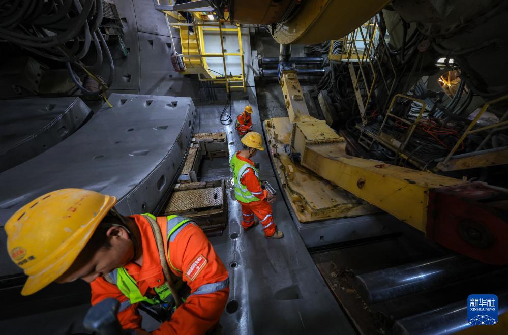 3月12日,中铁十一局施工人员在隧道内进行管片拼装作业。