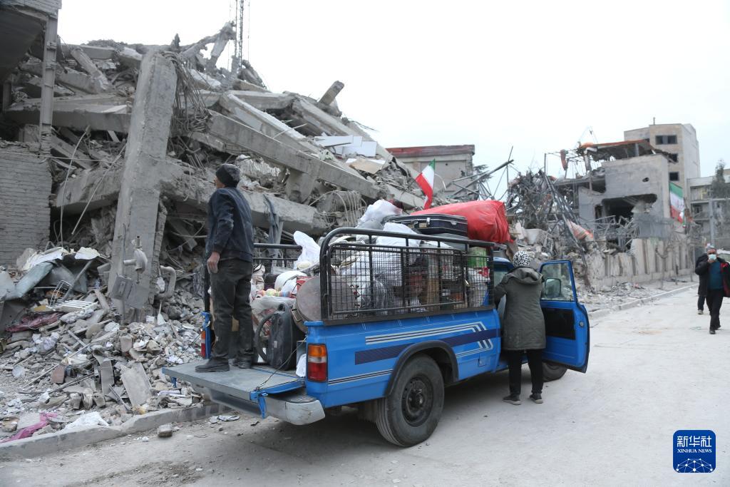 3月12日,在伊朗首都德黑兰,市民从损毁的建筑里搜寻生活用品。
