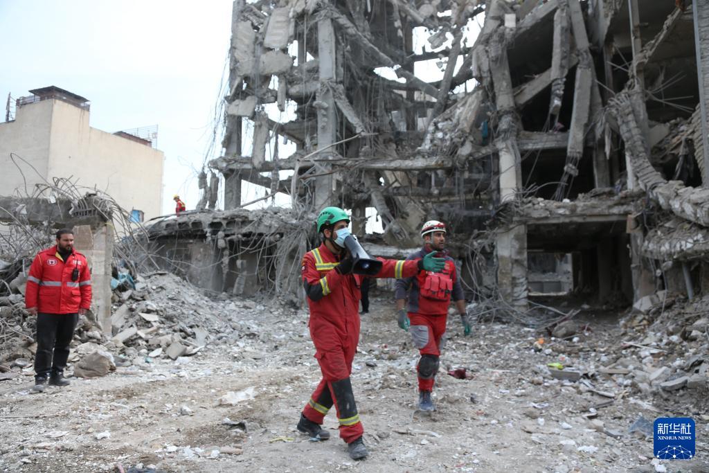 3月12日,在伊朗首都德黑兰,救援人员在受损建筑前工作。