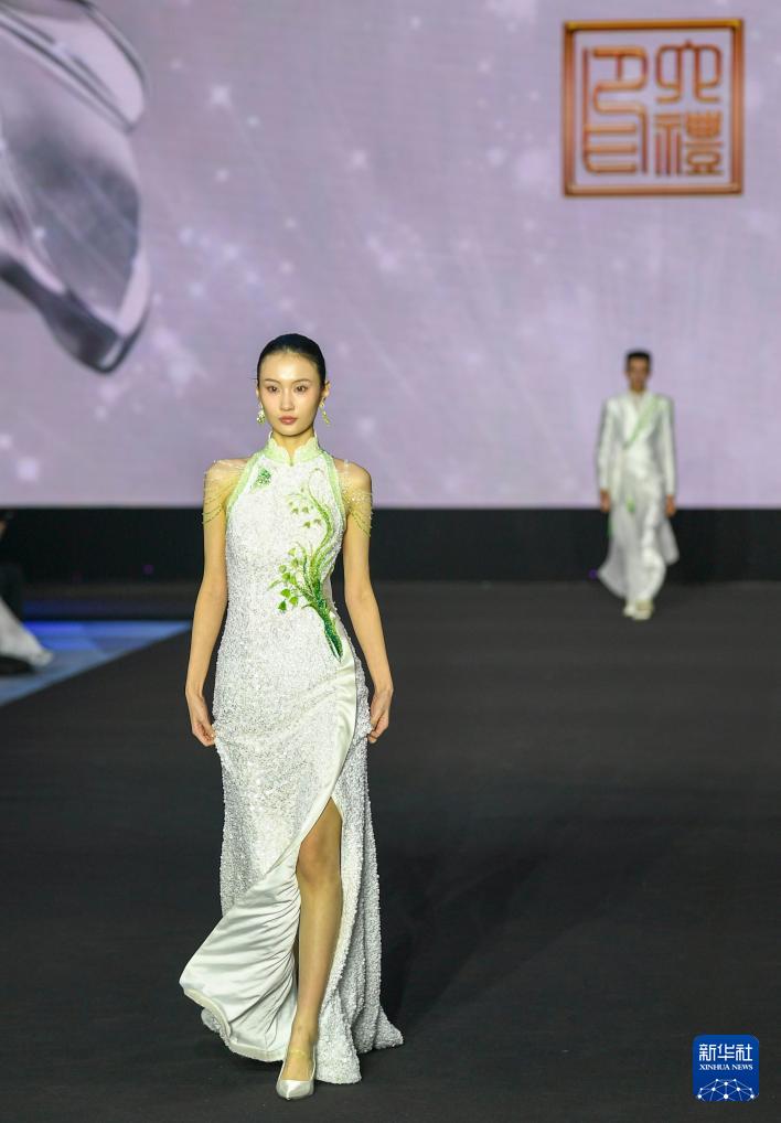 3月17日,在2026秋冬北京时装周开幕秀上,模特展示时装。