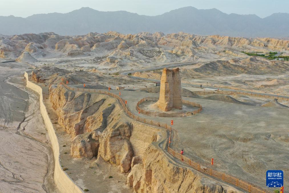 2023年9月8日在新疆库车市拍摄的克孜尔尕哈烽燧(无人机照片)。新华社记者 丁磊 摄