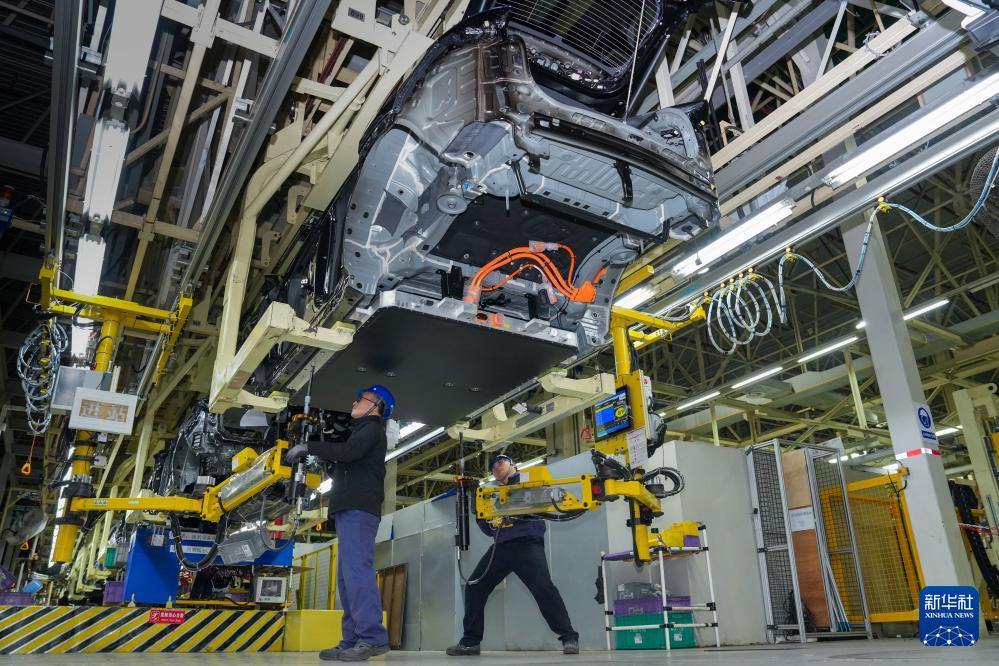 3月17日,在位于南京市江宁开发区的长安马自达汽车有限公司总装车间内,工人在生产线上进行生产作业。