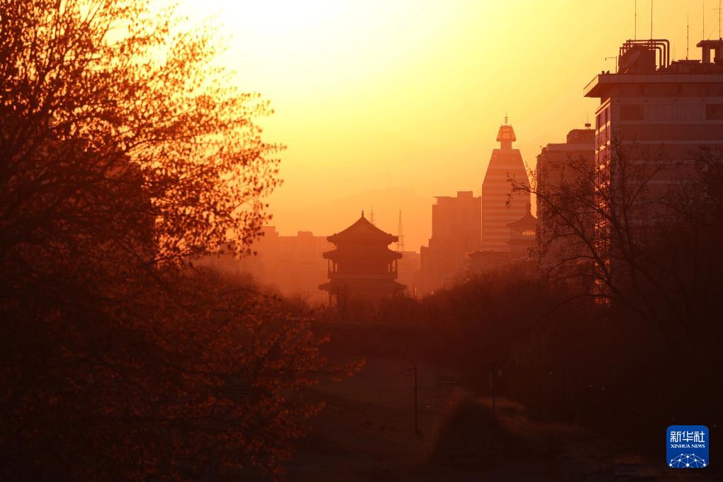 这是3月18日在北京明城墙遗址公园拍摄的夕阳风景。