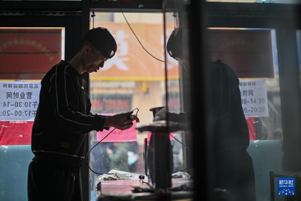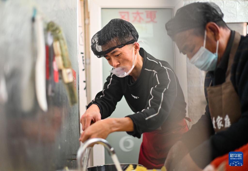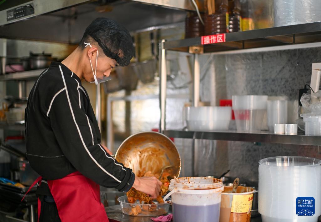 赵磊在店铺后厨忙碌(3月3日摄)。
