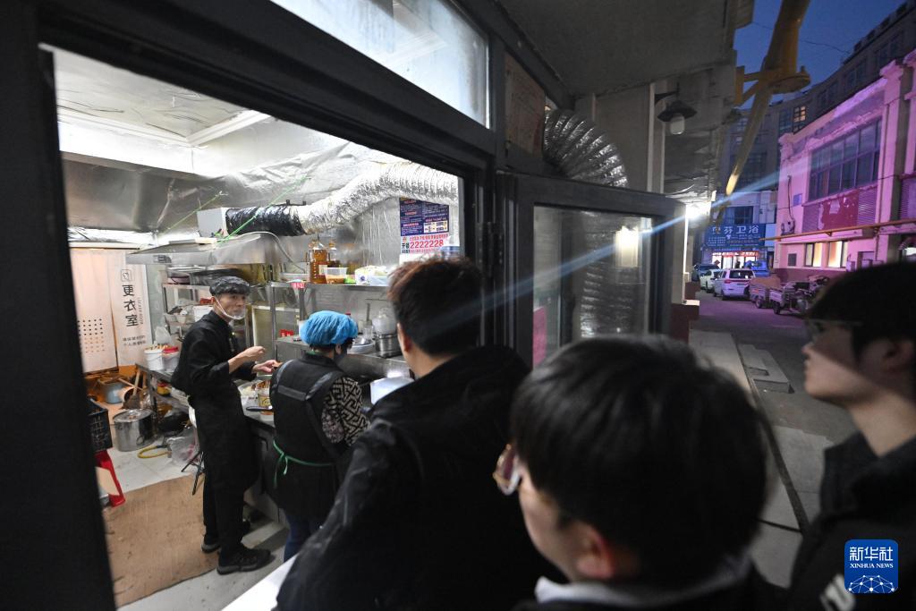 在天津市武清区杨村街道赵磊的小店门前,排到号的顾客喜笑颜开(3月3日摄)。