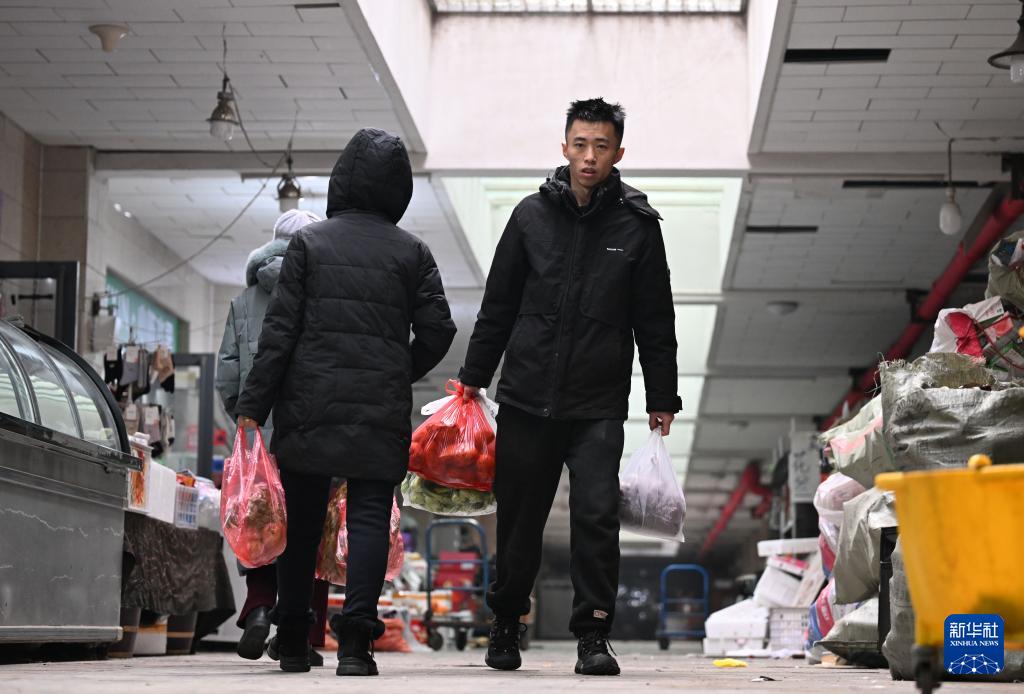 赵磊在菜市场采购当天所用的食材(3月3日摄)。