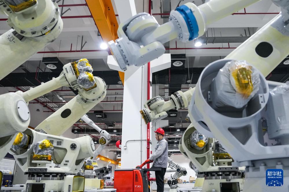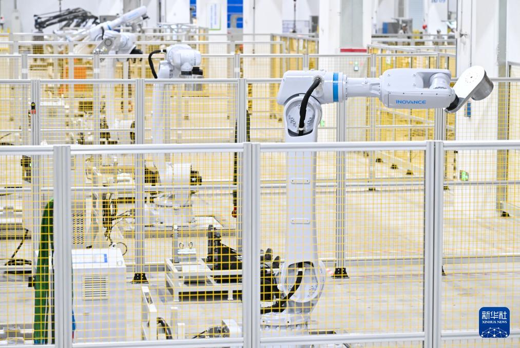 3月17日,在位于南京市江宁开发区的汇川技术南京基地自动化车间内,多关节机器人产线在进行出厂前测试。