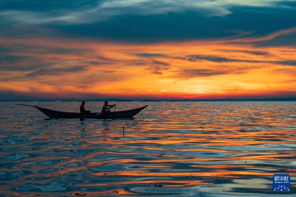 在肯尼亚基苏木,渔民于日落时分驾船在维多利亚湖上捕鱼(2026年2月27日摄)。