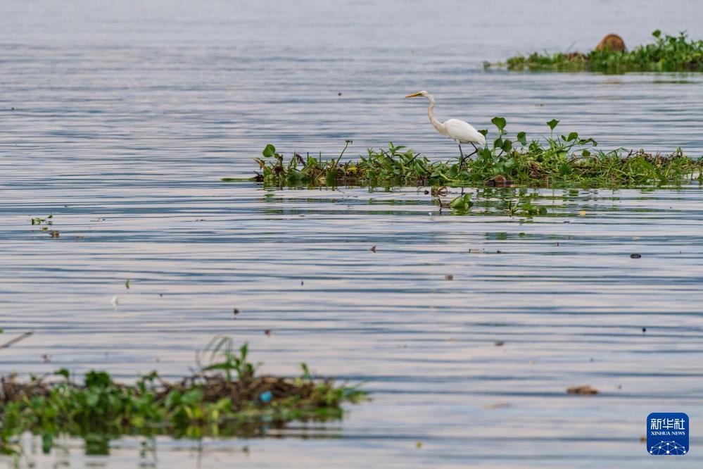在肯尼亚基苏木,一只白鹭在维多利亚湖上憩息(2026年2月27日摄)。