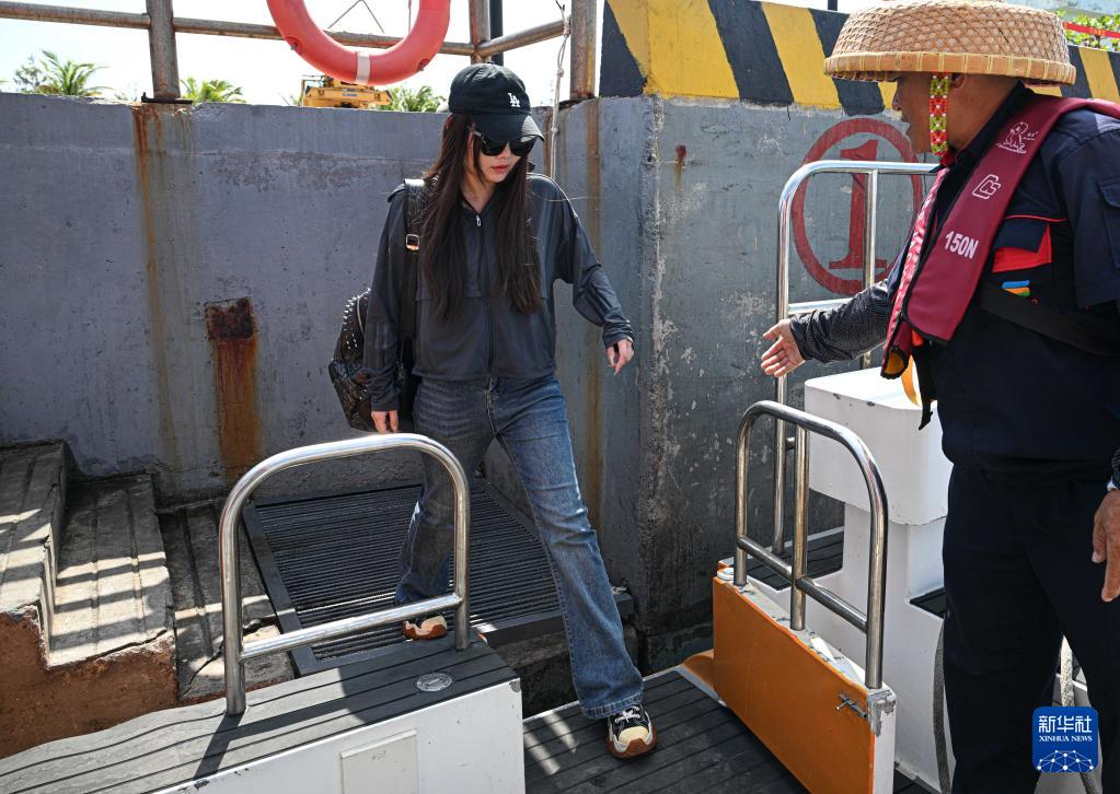 3月20日,乘客在海南三沙赵述岛码头登上海上交通保障船。