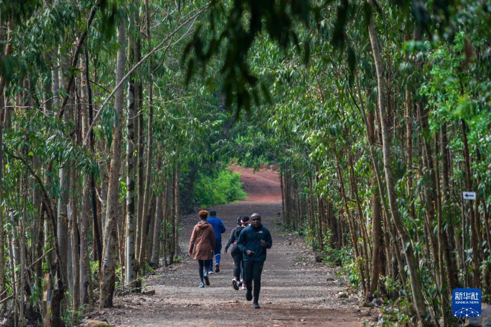 3月20日,在肯尼亚首都内罗毕,游客在恩贡路森林保护区内运动。