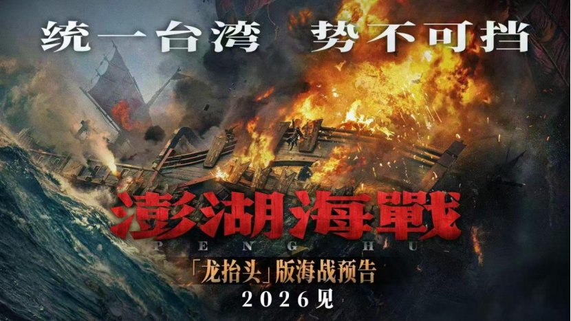 当日,电影《澎湖海战》重磅释出“龙抬头”版海战预告。37秒预告片,8个字台词,炮火劈怒涛,一段福建水师平阳总兵朱天贵率船突围,遭遇多船围堵、双船夹击炮轰古海战震撼场面如浪涌般扑面而来,视觉效果令人耳目一新。此番定于龙抬头与春分双节同日发布,蕴含 “两岸同春,万众盼归”的意义。在首届CMG中国电影盛典上,影片众主创热情向观众推介影片,齐声道出:“电影《澎湖海战》,2026年见。”