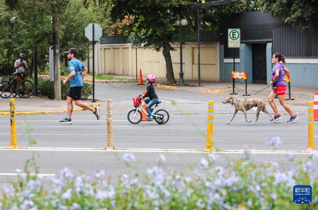 为推广绿色出行和健康生活理念,智利首都圣地亚哥市区的多条街道在每周日9时至14时对机动车封闭,方便人们进行骑行、跑步等活动。