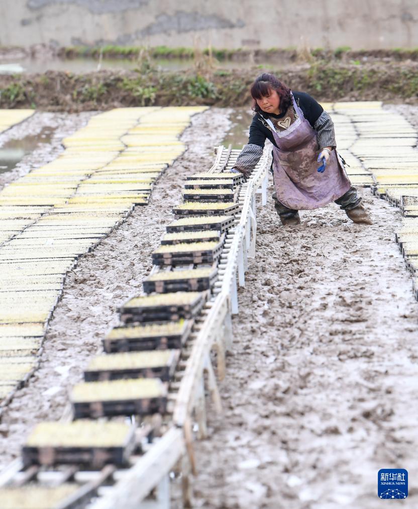 随着气温逐渐升高,在素有“渝东粮仓”之称的重庆市梁平区,农民抢抓农时进行水稻育秧等工作,田间地头一派繁忙景象。