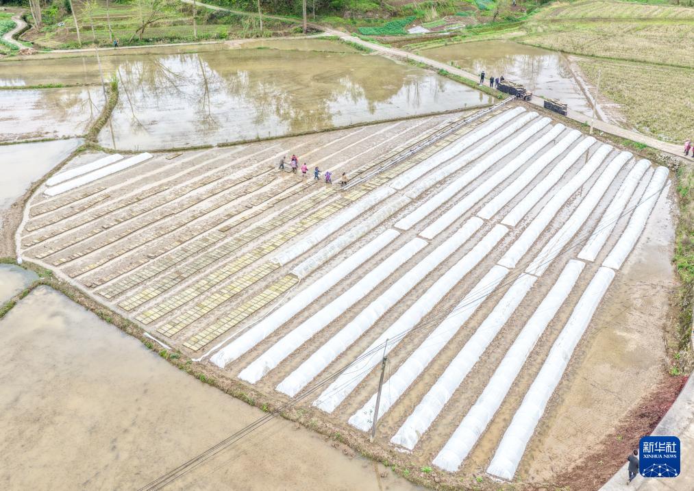 随着气温逐渐升高,在素有“渝东粮仓”之称的重庆市梁平区,农民抢抓农时进行水稻育秧等工作,田间地头一派繁忙景象。