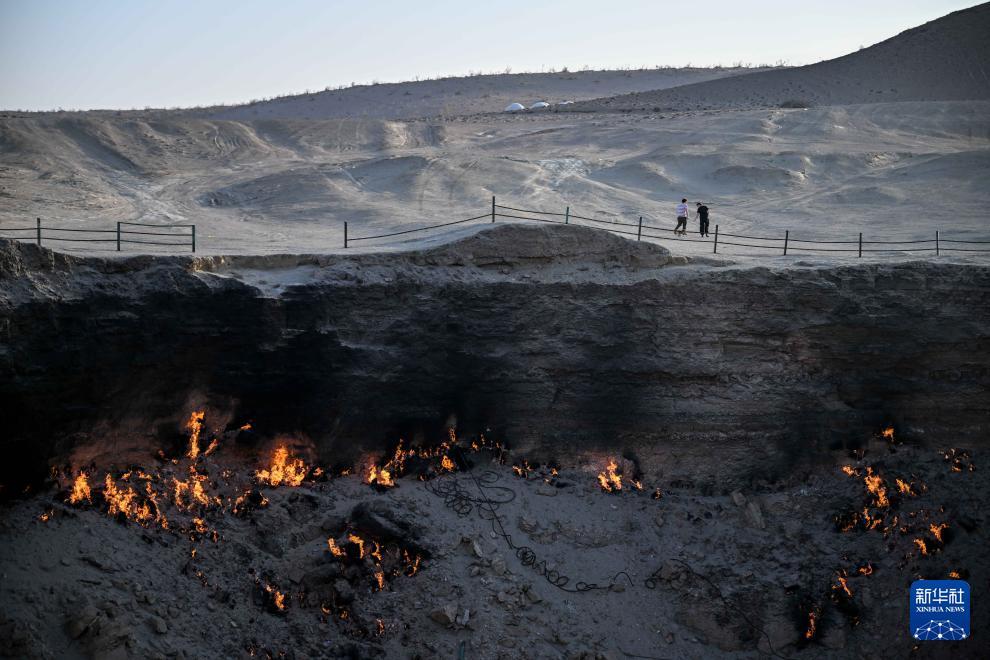 土库曼斯坦天然气资源异常丰富,被誉为“蓝金之国”,该国境内地下天然气自主外泄、油气作业放喷等“漏气”现象屡见不鲜。地处卡拉库姆大沙漠中心地带的达瓦扎天然气坑,是该国“漏气”现象最为典型的地点之一。这一坑洞直径约70米、深约20米,沸腾的泥浆和明亮的橙色火焰从深渊中升起,好似恶魔随时会从中一跃而出,因此当地人为其取名为“地狱之门”。
