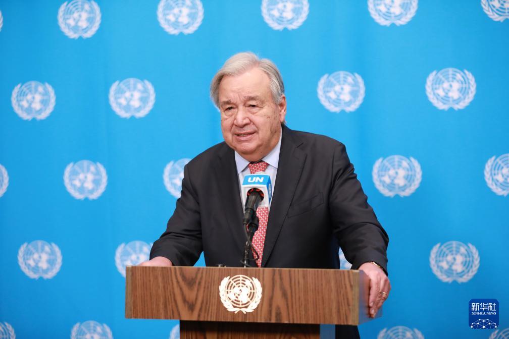 3月25日,联合国秘书长古特雷斯在位于纽约的联合国总部举行的记者会上讲话。新华社记者 谢锷 摄