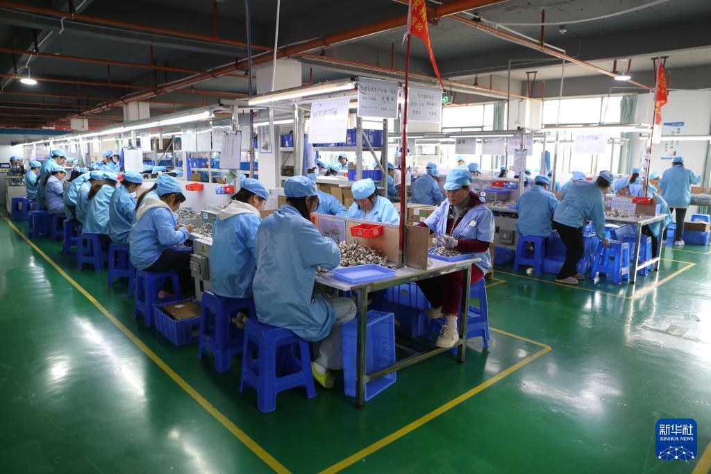 3月25日,工人在以礼街道一家企业生产车间流水线上作业。