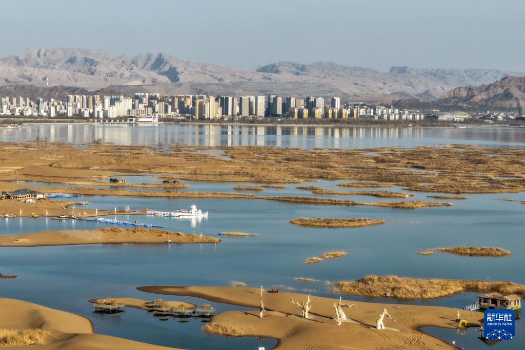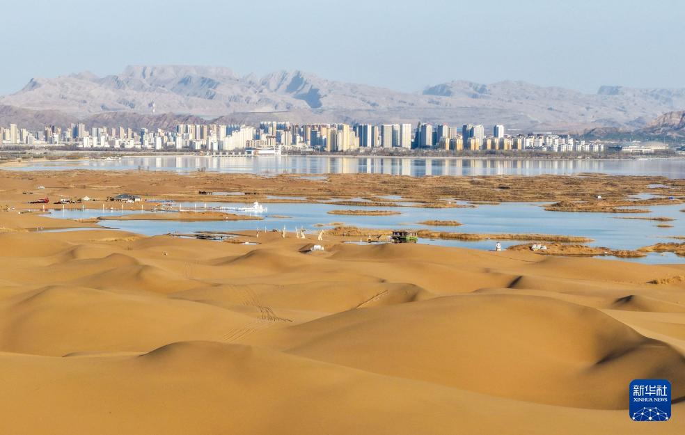 3月25日拍摄的乌海市乌海湖与沙漠美景(无人机照片)。
