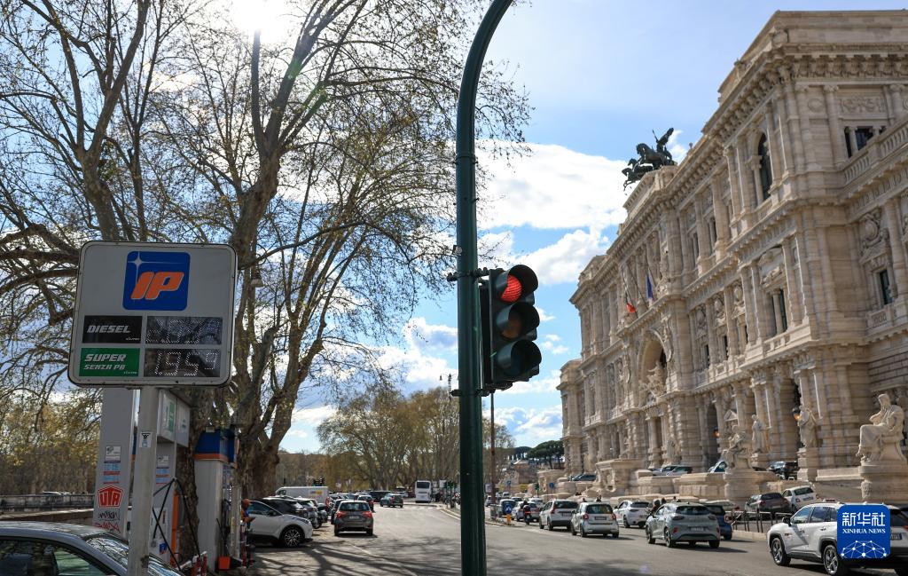 这是3月18日拍摄的意大利首都罗马一处加油站的油价牌。