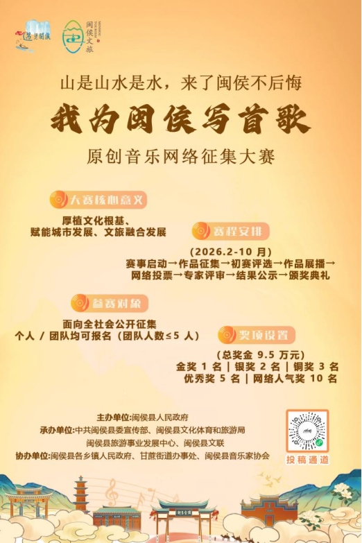 用旋律描绘闽侯山水,以歌词诉说人文情怀,共同唱响这片土地的时代新声。2月7日,在闽侯新春文化旅游月发布会上,“我为闽侯写首歌”原创音乐网络征集大赛正式启动,助力闽侯的故事传得更远,扎根更深。