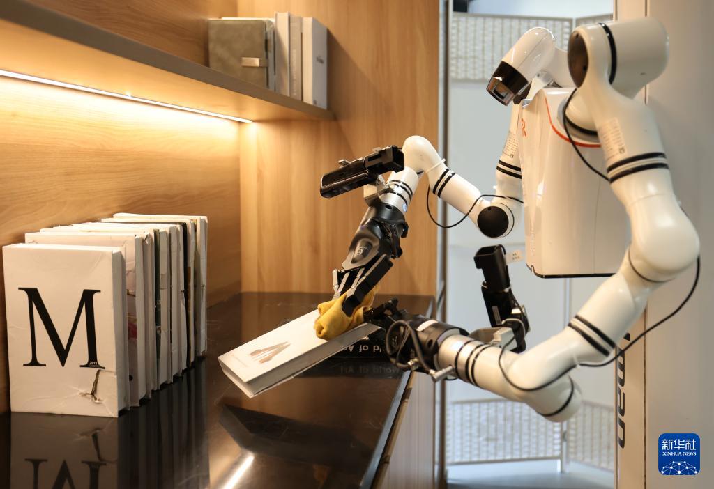 在人形机器人数据训练中心,机器人在工业智造、智慧家庭、商业服务等场景进行数据采集,为人形机器人相关研发提供数据支持。数据采集员在此操控机器人完成一系列特定任务,生成海量动作数据,让机器人“大脑”更智慧。未来,这些机器人将会进入工厂、商超、家庭等更多应用场景。