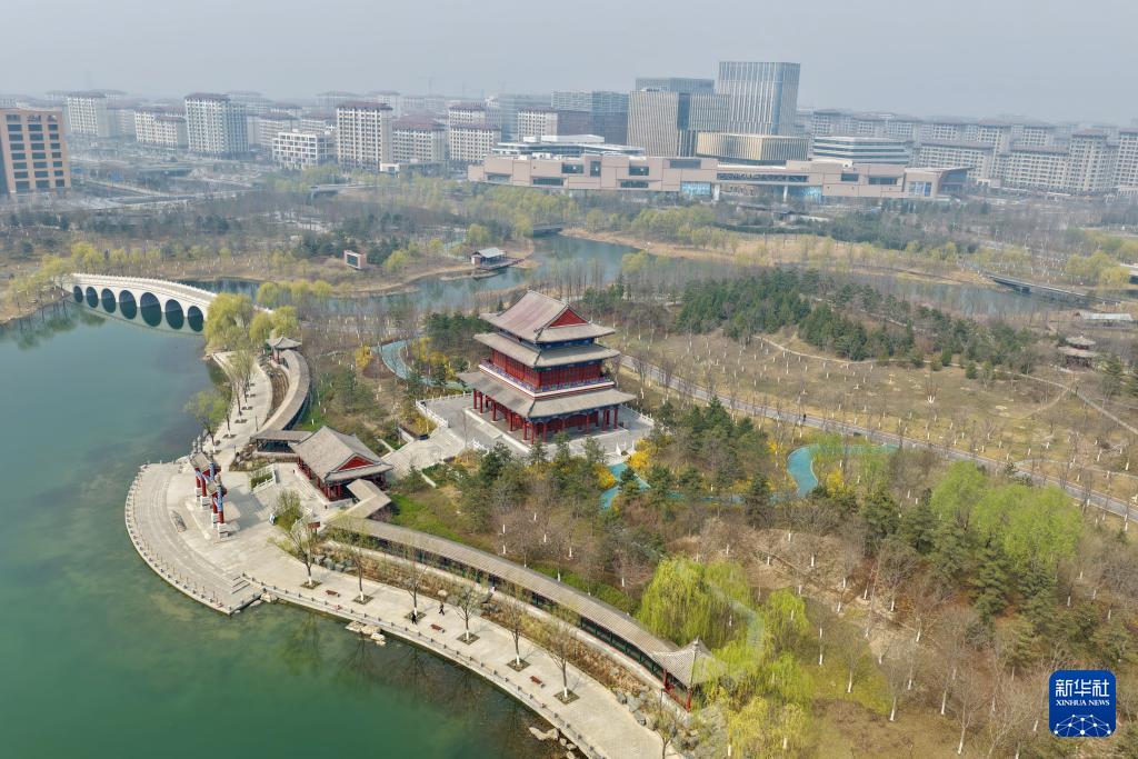 这是雄安新区容东片区金湖公园(3月26日摄,无人机照片)。