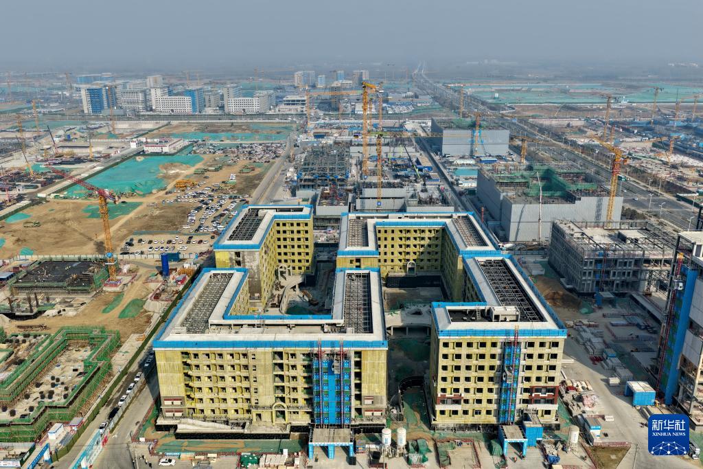 北京科技大学雄安校区建设现场(3月25日摄,无人机照片)。