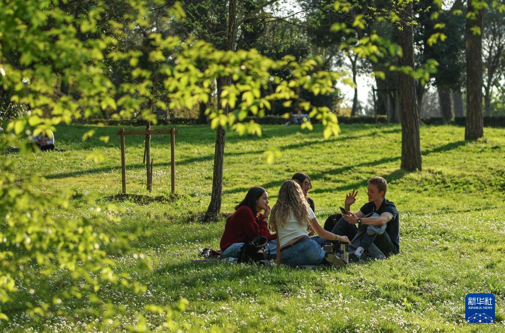 3月29日,人们在意大利首都罗马的博尔盖塞公园休闲。