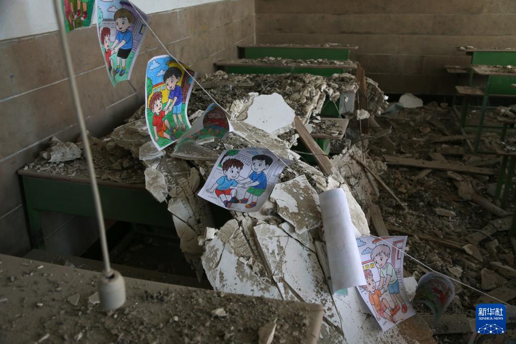 这是3月3日在伊朗德黑兰市中心的沙希德·马哈拉提学校一间教室内拍摄的画面,该校在美国和以色列对伊朗的军事打击中遭到严重损毁。