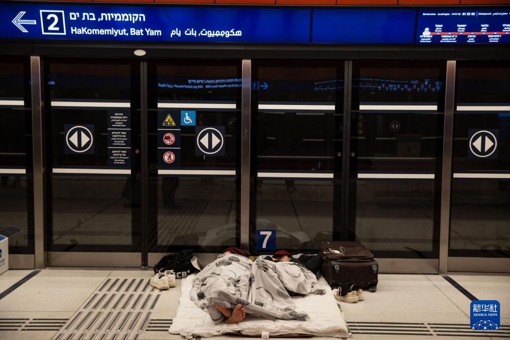 3月2日,人们在以色列特拉维夫市中心的一处地铁站台过夜。