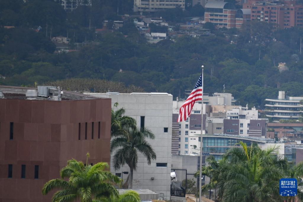 3月30日,在委内瑞拉首都加拉加斯,美国驻委大使馆升起国旗。新华社发(马科斯·萨尔加多摄)