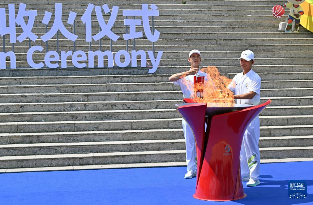 3月30日,最后一棒火炬手齐广璞手持火炬抵达收火仪式现场。