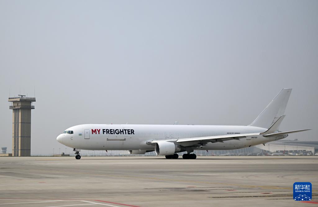 3月31日,一架货机在郑州新郑国际机场滑行。
