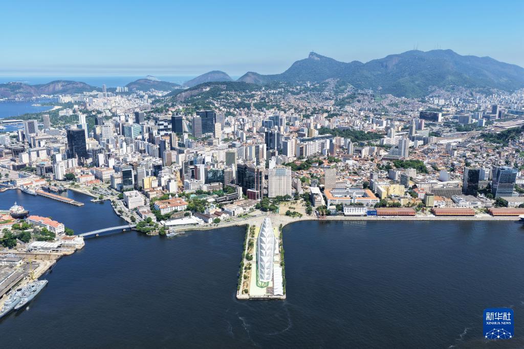 这是3月24日拍摄的巴西里约热内卢明日博物馆(前)和市区风光(无人机照片)。