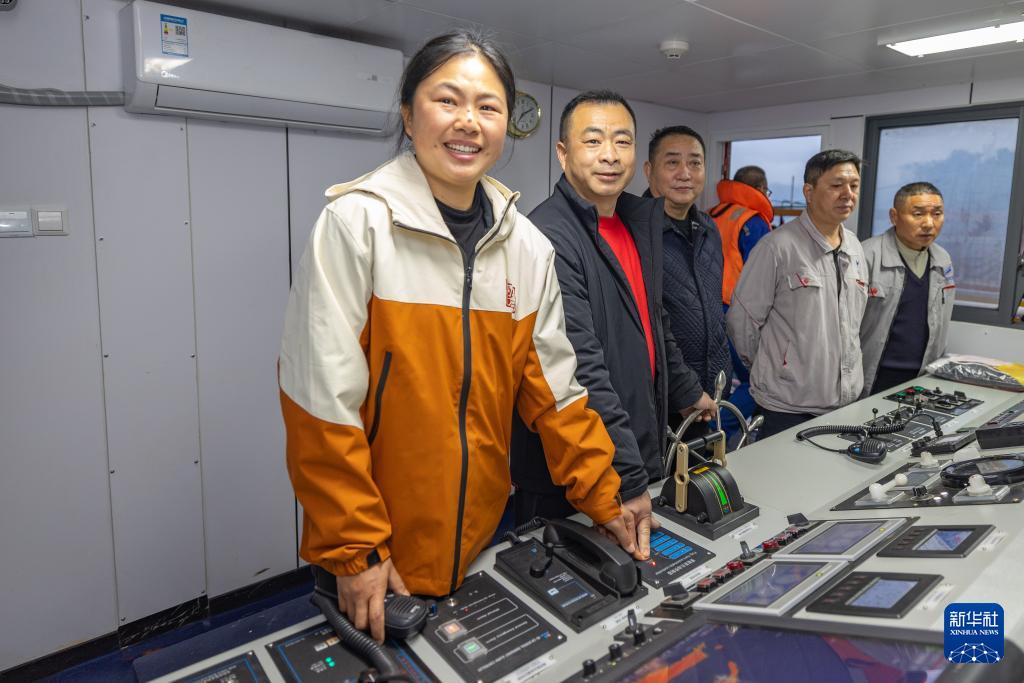 3月31日,在长江重庆忠县洋渡码头,秦大益(左二)与合伙人曹利芳(左一)共同按响“新渝忠客2180”客轮的首航汽笛。