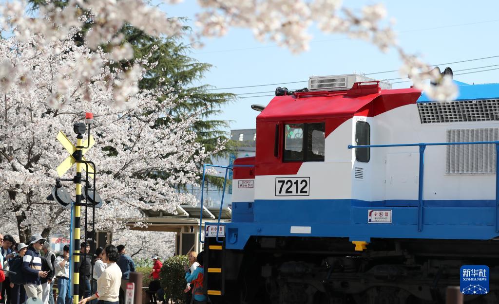 近日,韩国昌原市樱花盛开。昌原市的镇海军港樱花节是韩国最著名的樱花盛典之一,吸引大批游客慕名前来。