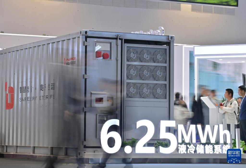 4月2日,参观者在第十四届储能国际峰会暨展览会上了解南都电源的6.25MWh液冷储能系统。