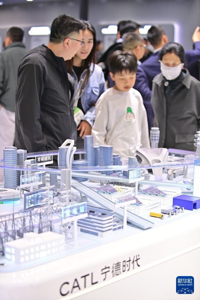 4月2日,观众在第十四届储能国际峰会暨展览会上了解宁德时代的零碳城市全场景解决方案。