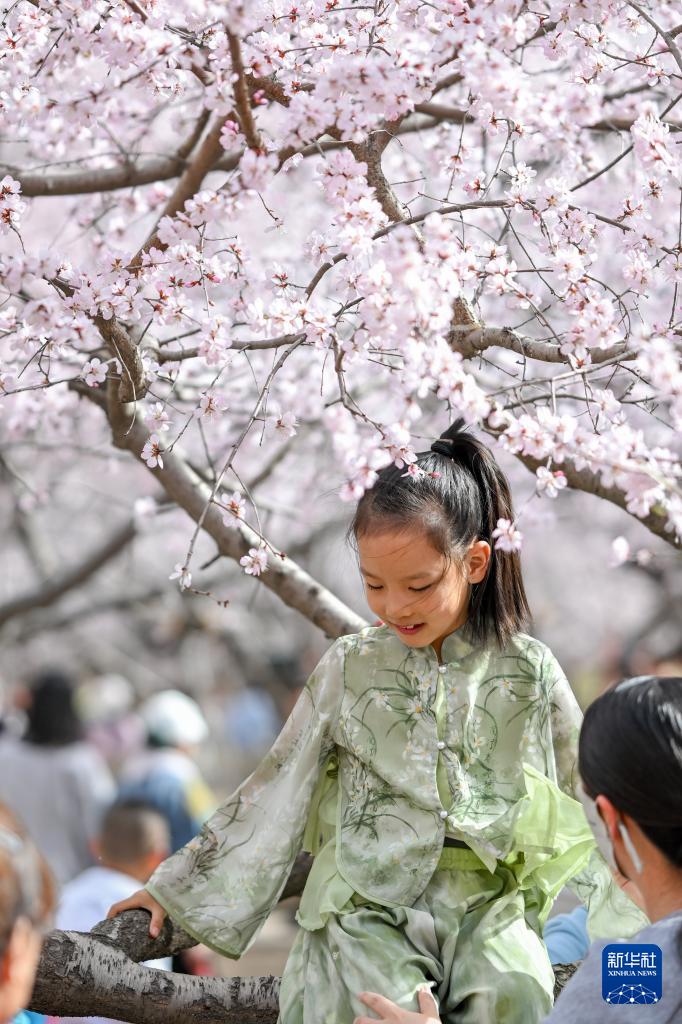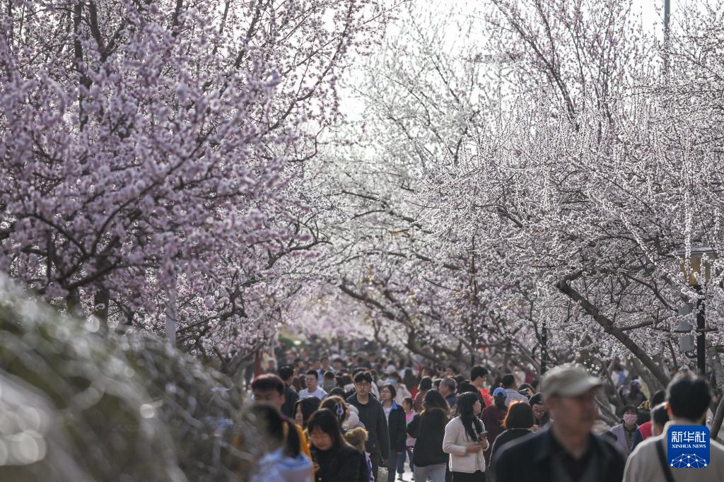 近日,随着气温回升,内蒙古呼和浩特市公主府公园的桃花陆续开放,吸引了众多市民前来踏青赏花。