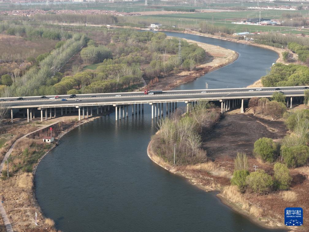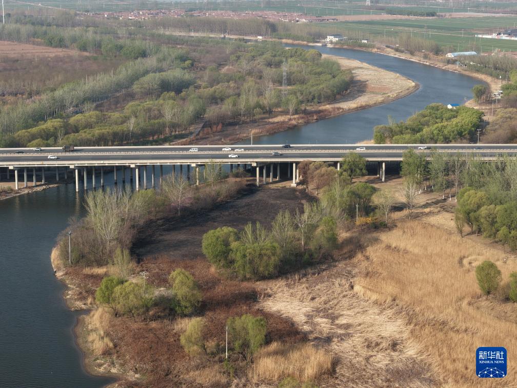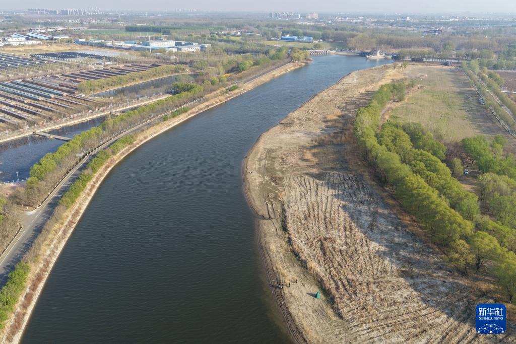 4月4日拍摄的京杭大运河天津武清段的春天景色(无人机照片)。