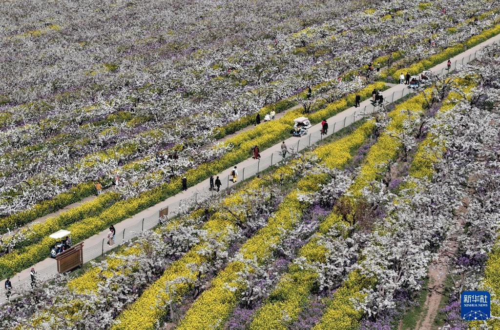 近日,河北省晋州市17万亩梨树迎来盛花期,梨花与田间连片盛开的油菜花相映生辉,吸引大量游客前来赏花踏青,休闲度假。