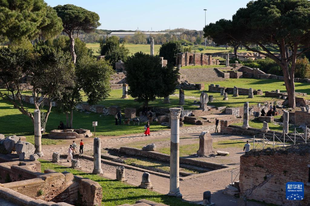 4月5日,游客在意大利罗马的奥斯蒂亚古城遗址游览。