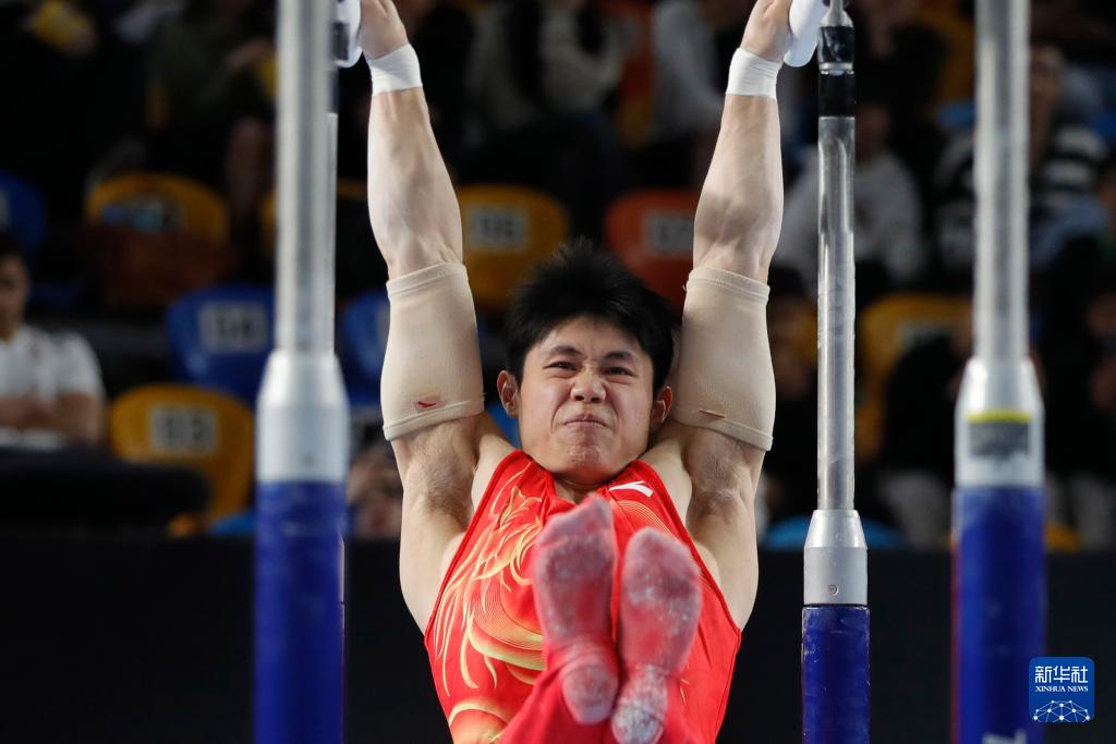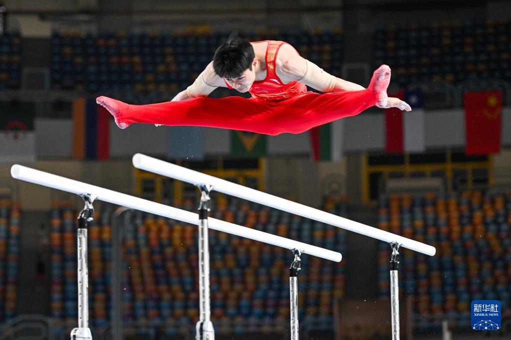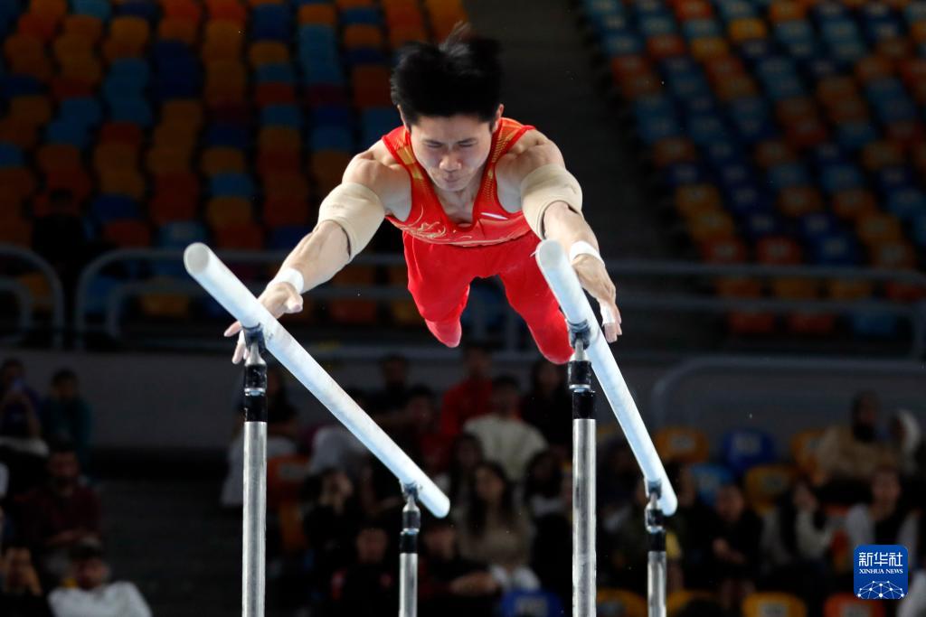 当地时间4月6日,2026年国际体联体操世界杯开罗站男子双杠决赛在埃及开罗举行。