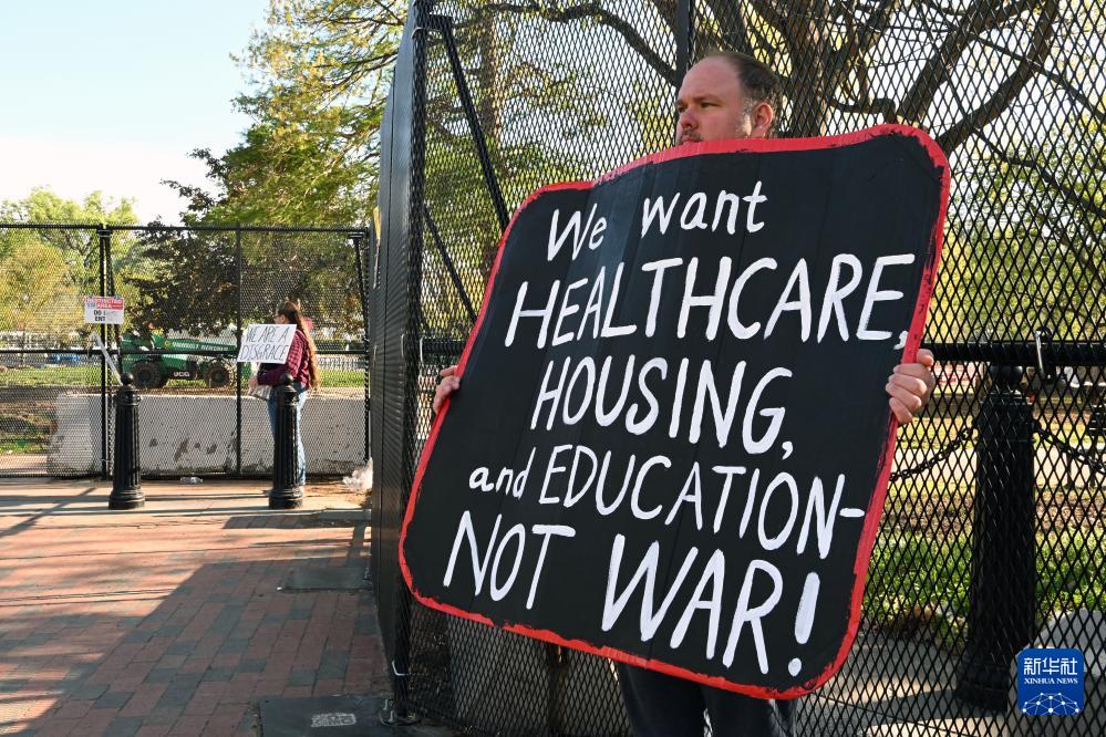 4月7日,人们在美国首都华盛顿的白宫前示威。