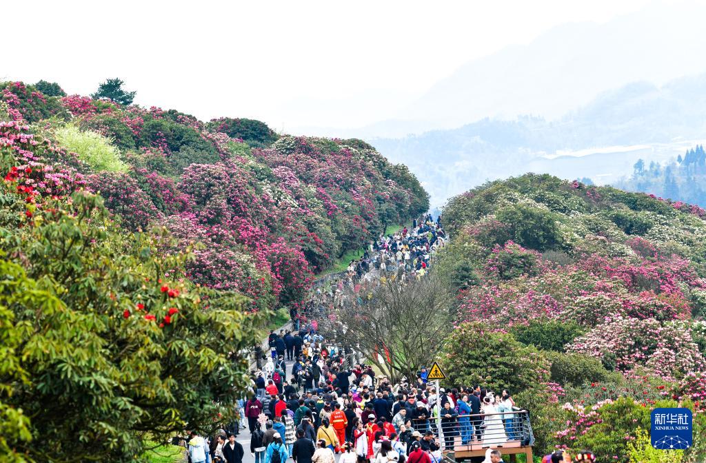 游人如织的贵州百里杜鹃管理区普底景区(4月1日摄)。