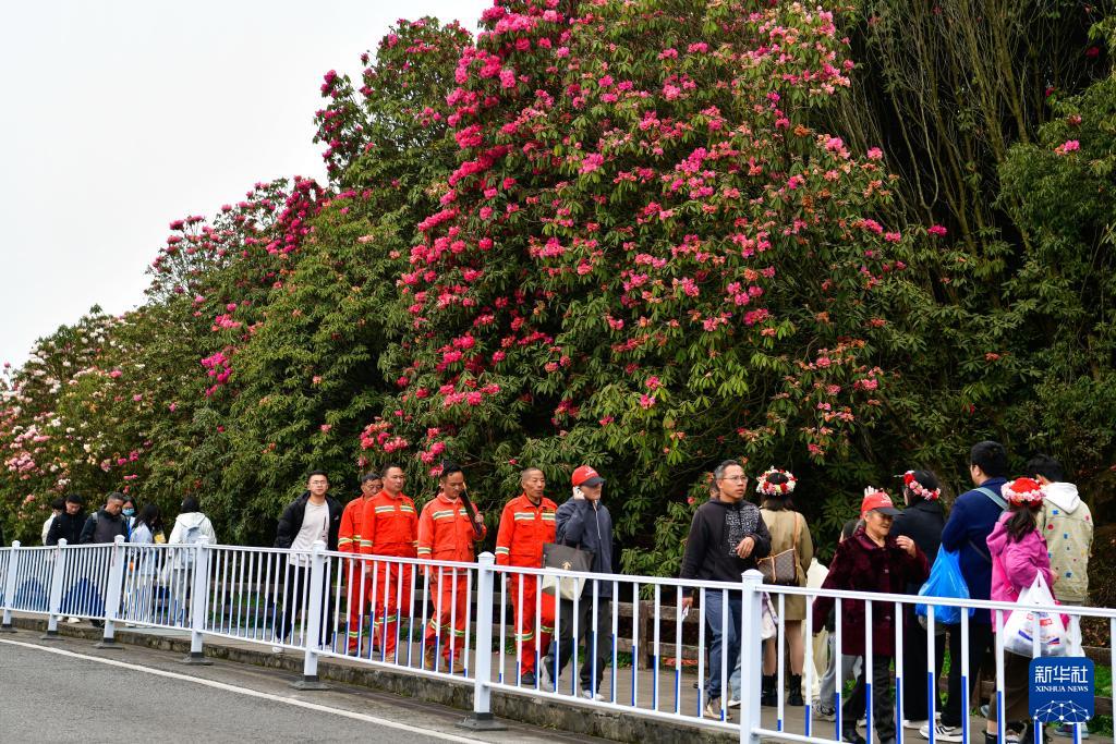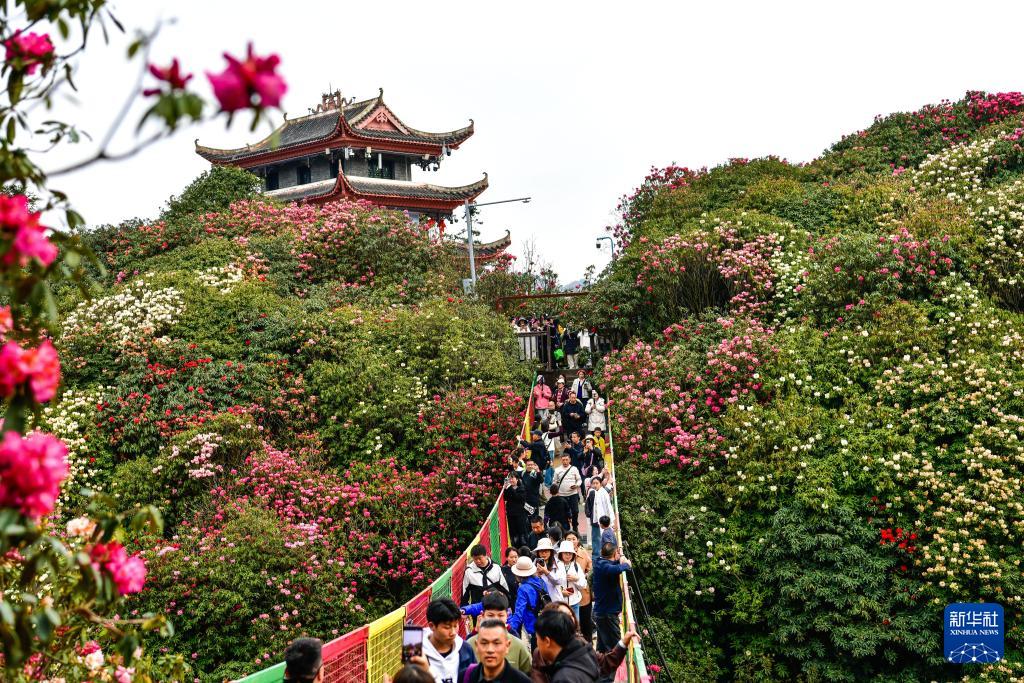 游人如织的贵州百里杜鹃管理区普底景区(4月1日摄)。