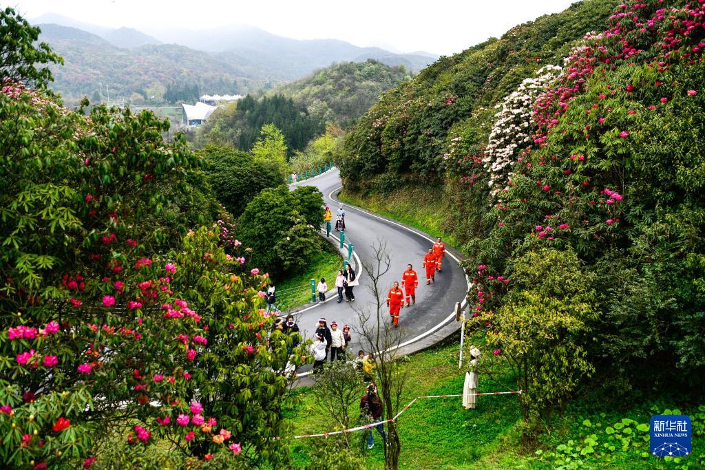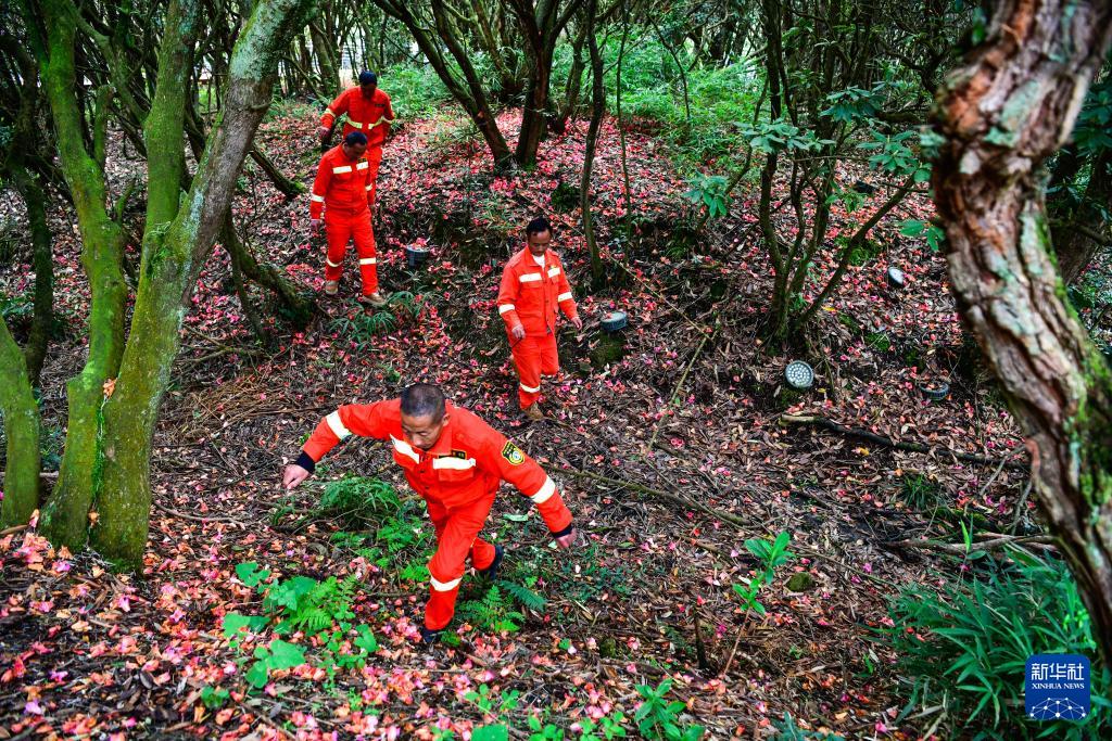 森林防火队员们在贵州百里杜鹃管理区金坡景区巡逻,排查森林火灾隐患(4月2日摄)。