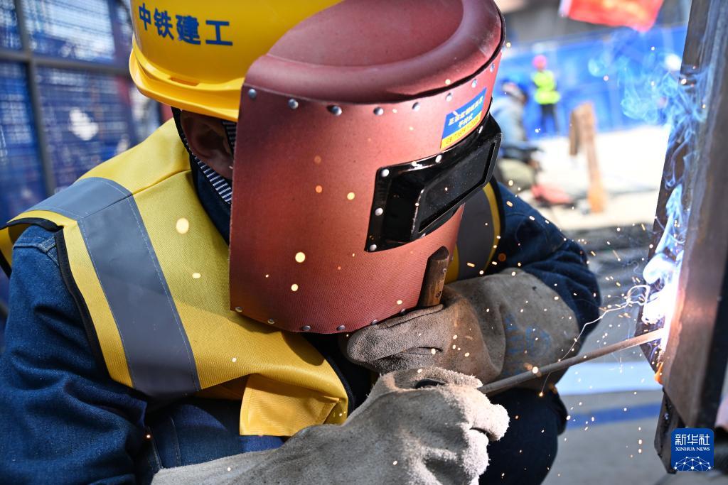 4月8日,在青岛市南京路1号项目比赛现场,一名选手在电焊工个人赛中。