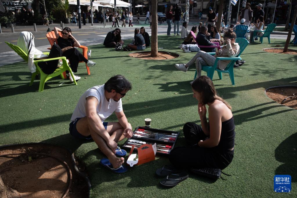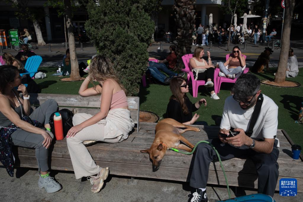 在特拉维夫市中心的迪岑哥夫广场,记者看到不少市民坐在咖啡馆外。有人散步,有人聊天,还有人什么都不做,只是安静地坐着,享受阳光。